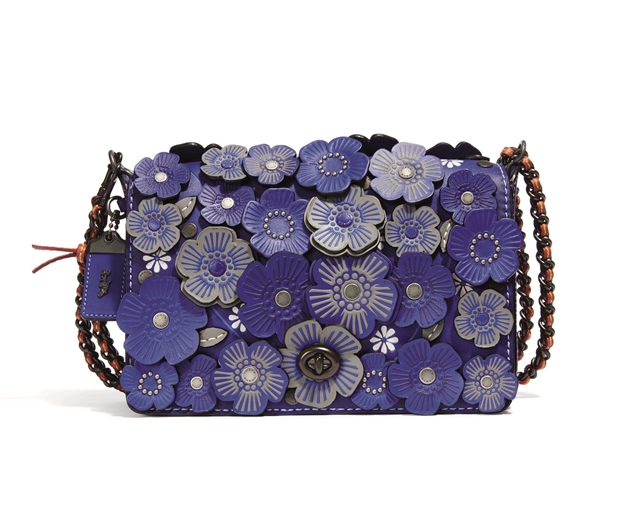 Hadir sekali lagi, beg perincian bunga tiga dimensi yang menjadi kepakaran Coach dihasilkan dari material kulit palet biru. Beg silang Tea Rose Applique Dinky turut dihidangkan dalam rona berbeza.