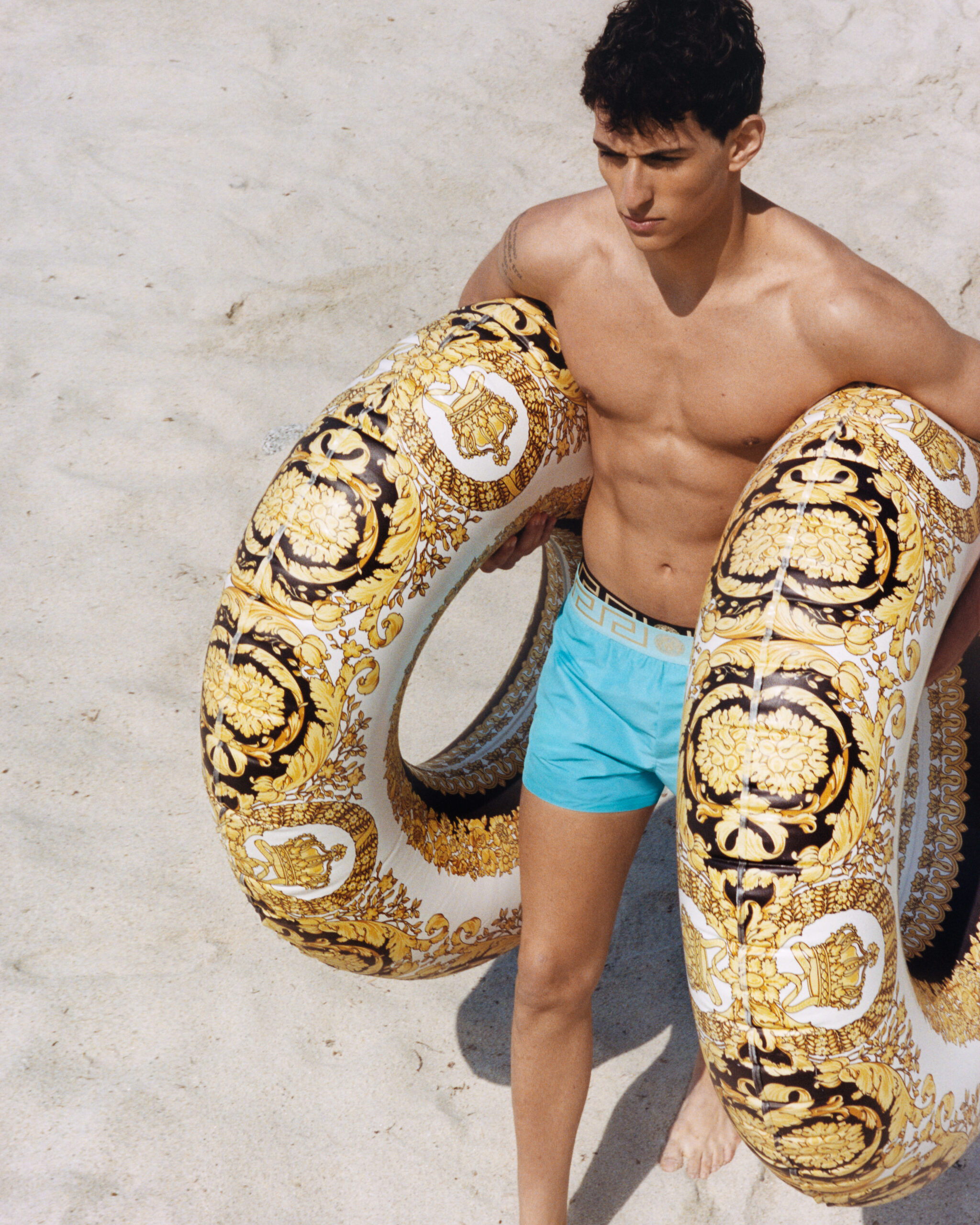 Cetakan Barocco meliputi seluruh rangkaian bikini, baju sutera dan seluar renang, manakala selendang sutera bercetak diikat pada beg bakul rotan La Medusa baharu. Beg tote kanvas saiz medium menampilkan logo Versace dan plak Medusa dalam ton warna merah menyala, kuning dan biru DV, dan merupakan gaya yang versatil untuk penampilan di pantai dan lain-lain.
