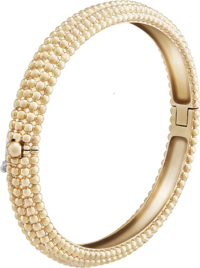 Di atas sebentuk cincindan juga seurat gelang, tiga sehingga lima baris melengkung telah ditambah dengan perincian manik yang lazim dengan setiap rekaan Van Cleef & Arpels dalam koleksi Perlée kali ini untuk memberikan lebih dimensi kepada ceraian-ceraian ini.