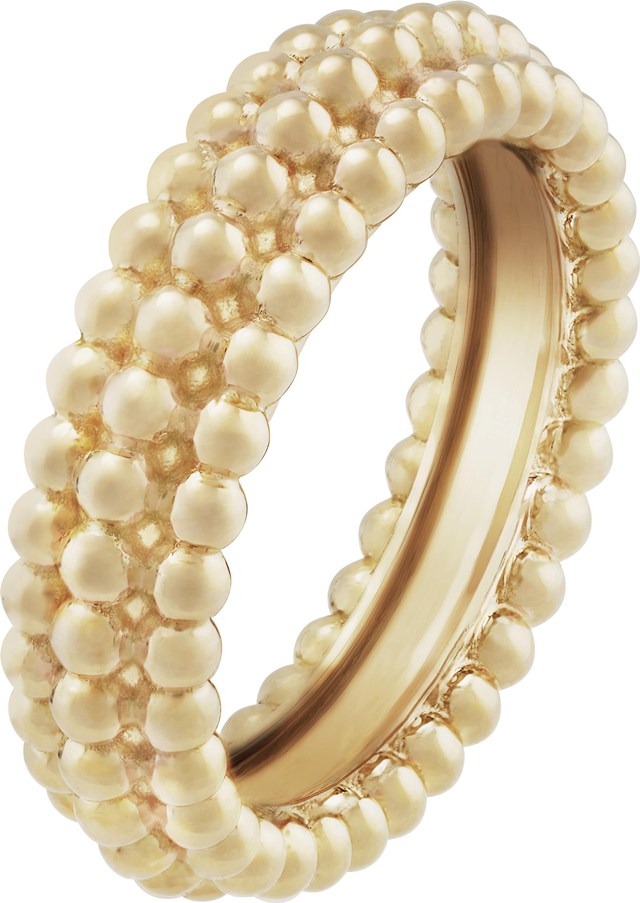 Di atas sebentuk cincindan juga seurat gelang, tiga sehingga lima baris melengkung telah ditambah dengan perincian manik  yang lazim dengan setiap rekaan Van Cleef & Arpels dalam koleksi Perlée kali ini untuk memberikan lebih dimensi kepada ceraian-ceraian ini.