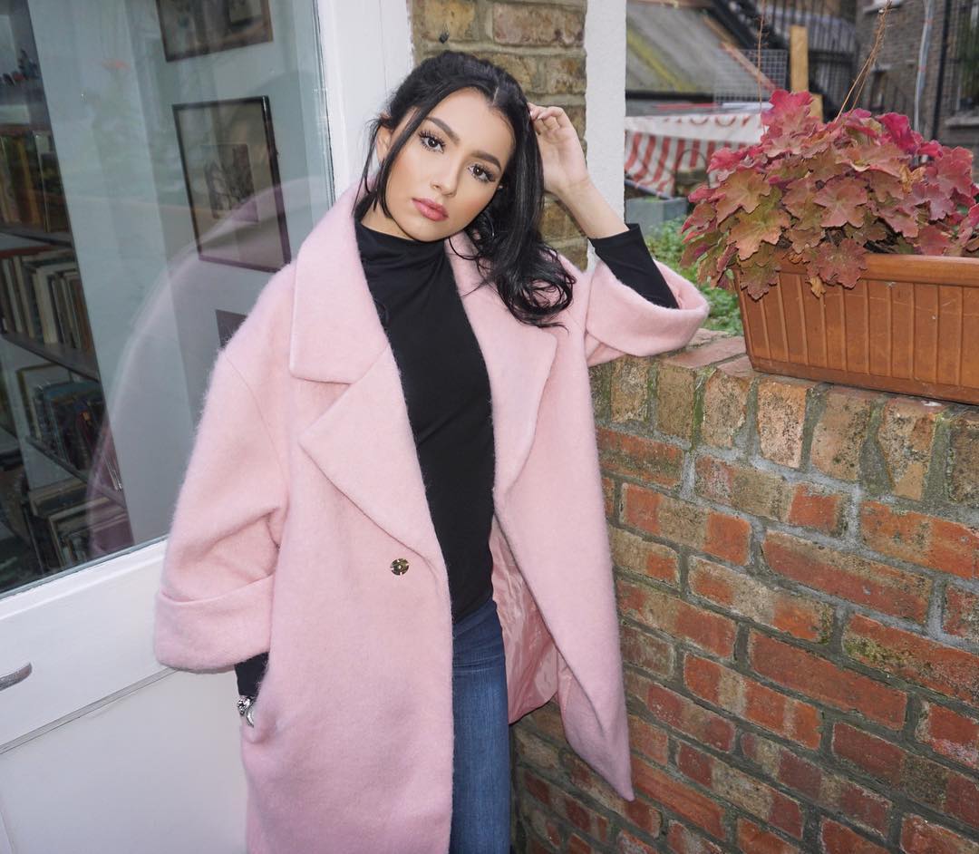 4. Gaya simple dikenakan beliau buat musim sejuk — kot oversized merah jambu menjadi penarik perhatian look bersahaja ini.