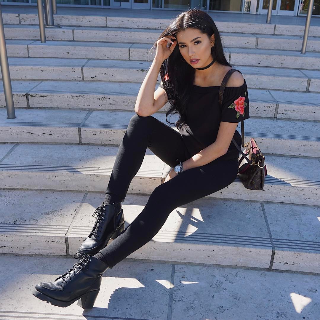 6. Gaya serba hitam ini dilengkapkan bersama tas tangan Louis Vuitton berona merah pekat — padan digayakan bersama motif bunga mawar di lengan bajunya!