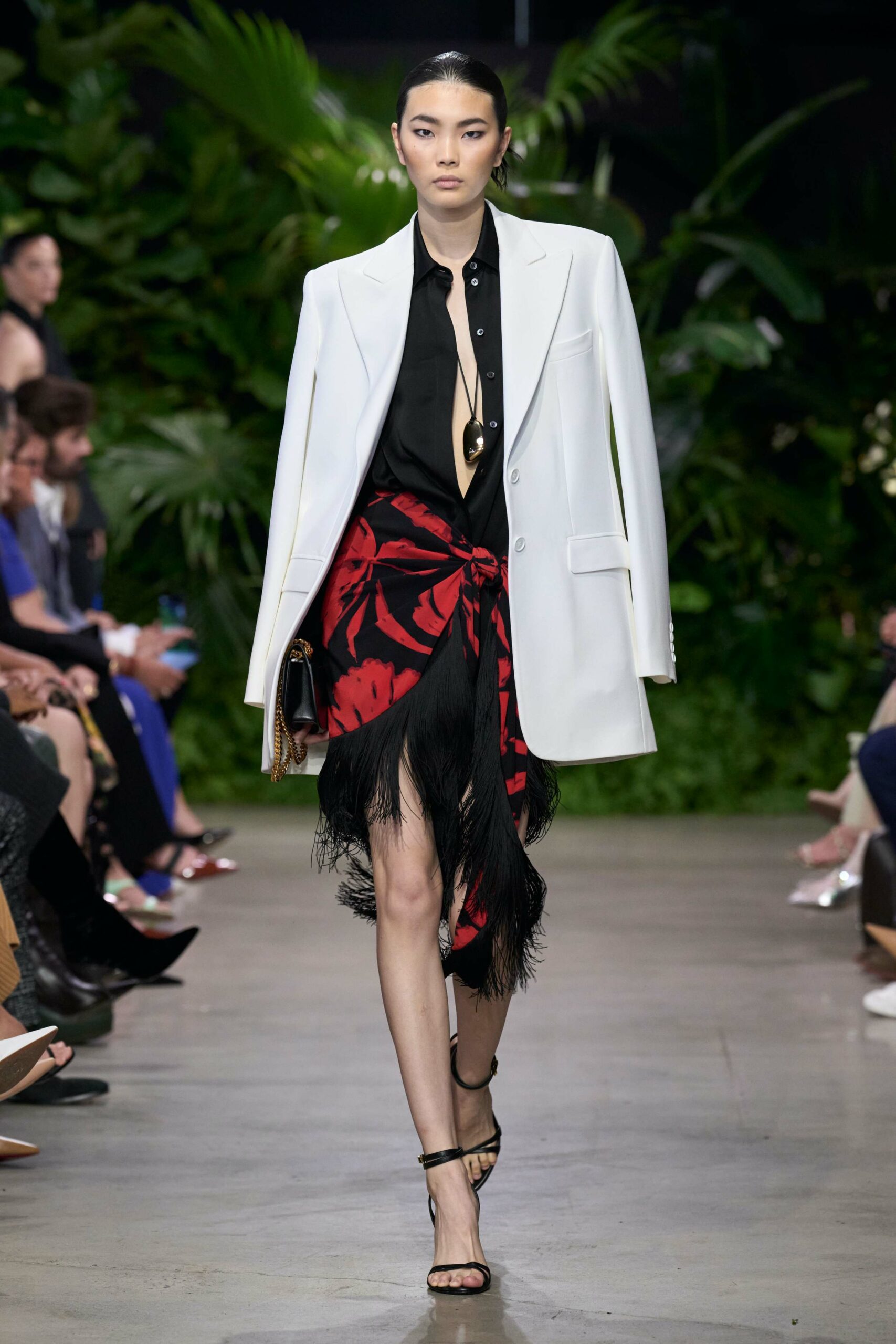 “Destinasi peranginan di bandar pada saya adalah yang terbaik dari kedua-dua dunia, ia adalah mengenai kemewahan dan keanggunan kehidupan bandar dengan glamor santai yang akan ditemui di seleksi pusat peranginan terbaik,” kata Michael Kors mengenai koleksi musim bunga 2023.