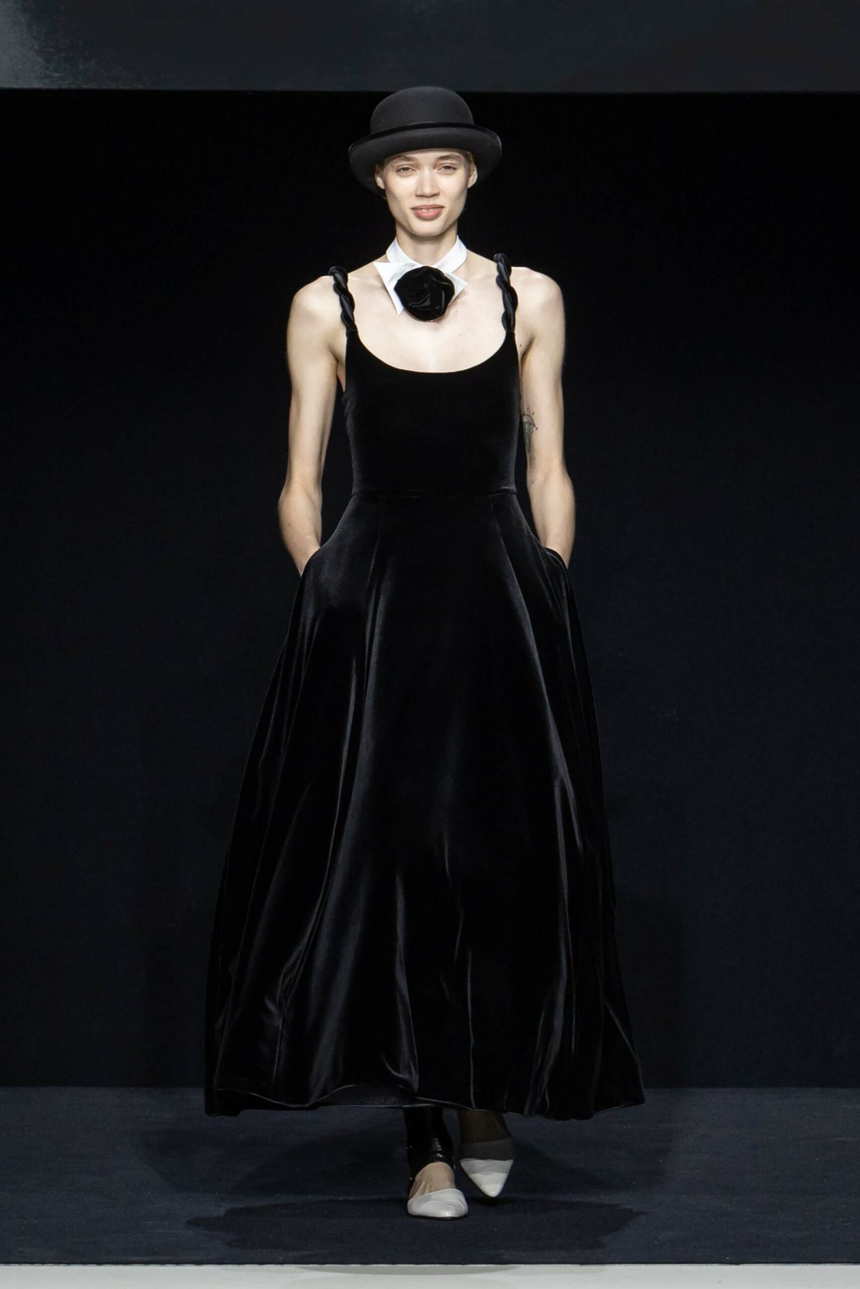 Mengambil inspirasi daripada kemegahan teater Elizabethan, koleksi itu memancarkan rencah drama yang moden. Daripada rekaan topi kecil ala gaya Charlie Chaplin, kepada jaket yang dihiasi dengan butang tidak simetri, dan top malam yang dihiasi dengan butiran yang mempesonakan, setiap rekaan memberi penghormatan kepada kostum pentas, direka melalui perspektif kreatif Armani sendiri.