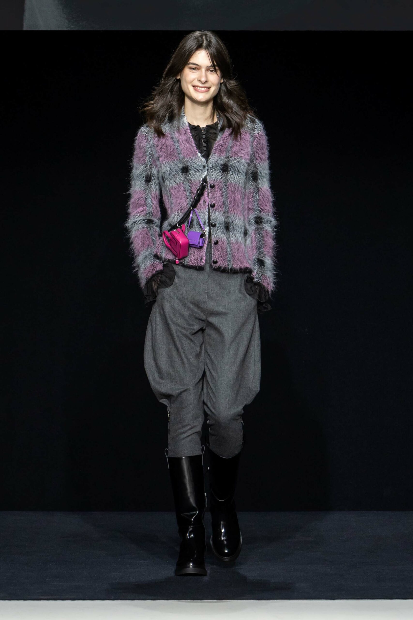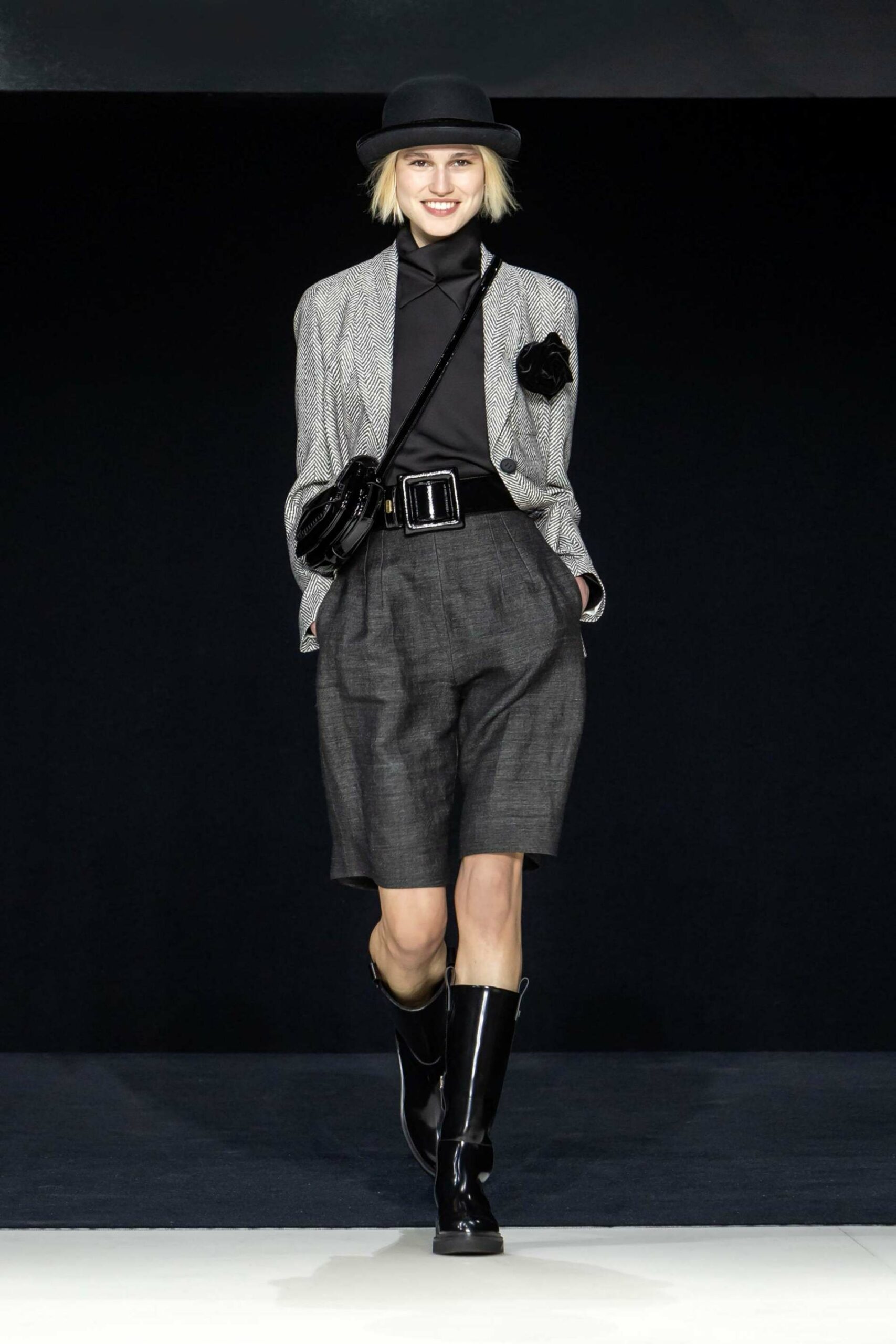 Melalui koleksi musim luruh/dingin 2023, Armani membawa etos ini ke peringkat yang lebih tinggi, menyemai seri urban yang eklektik dengan sentuhan glamor dan efek klasik yang diperhalusi. Musim ini, keironian dijalin secara halus ke dalam setiap jahitan, sama seperti senyuman penuh persoalan yang menghiasi latar belakang teater-menjelmakan spirit dan sifat koleksi musim ini.