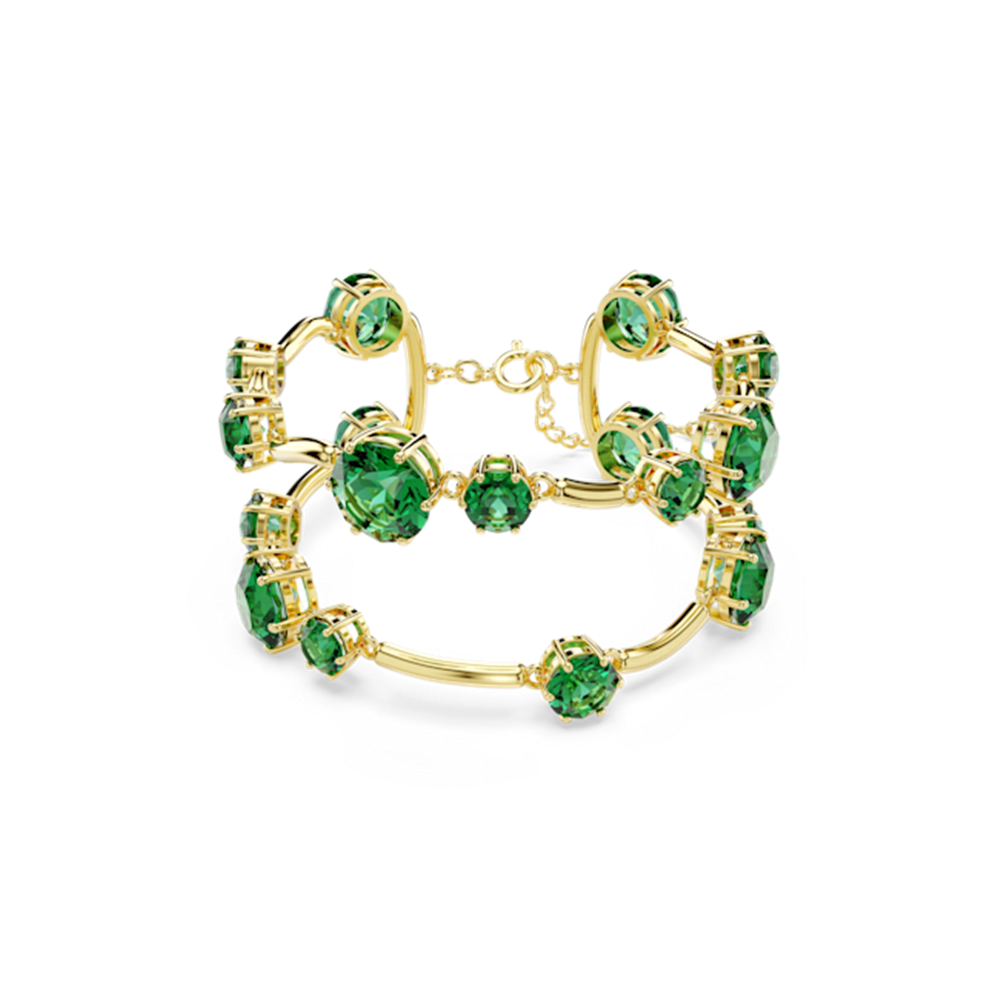 Kecantikan bertemu dengan kesederhanaan dalam ciptaan yang cerah ini yang berinspirasikan kosmik. Menampilkan green stone yang mengagumkan di tengah, ia dirangka dengan seni binaan teknik pavé khas Swarovski dan diakhiri dengan gold-tone plated chain. Elegan, moden, dan sedia untuk menarik perhatian pada hari Raya anda.