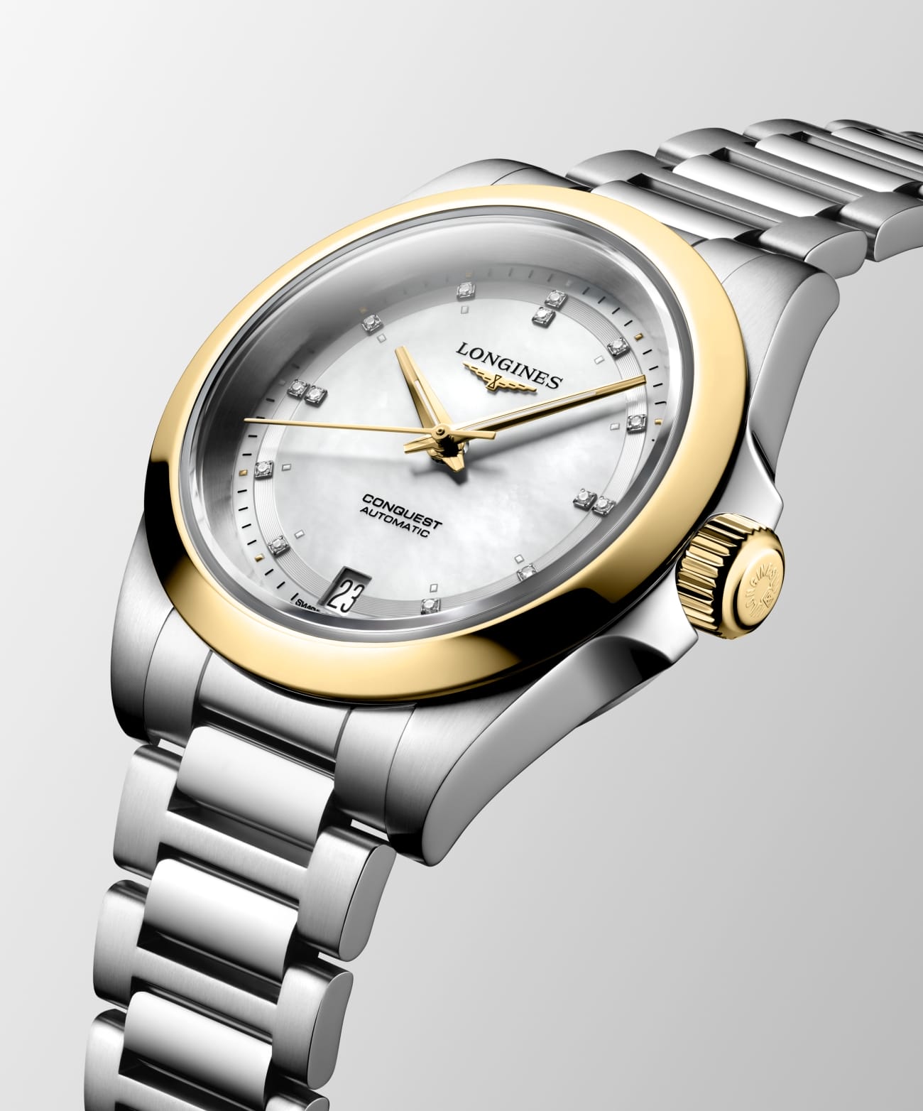 Model 34 mm dengan bezel emas kuning serta dail mother-of-pearl dihiasi berlian menyerlahkan sisi feminin yang elegan, tanpa mengorbankan prestasi teknikal. Manakala versi sunray biru dengan bezel emas ros menawarkan ekspresi keyakinan dan kematangan gaya moden. Untuk lelaki, Conquest 41 mm dengan dail biru sunray tampil maskulin dan teguh, simbol kestabilan dan kepercayaan dalam hubungan jangka panjang.