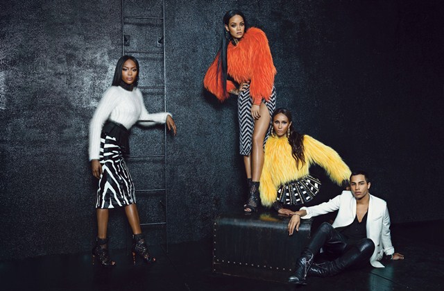 Naomi Campbell, Rihanna, Iman dan Olivier Roustaing untuk kempen Balmain.