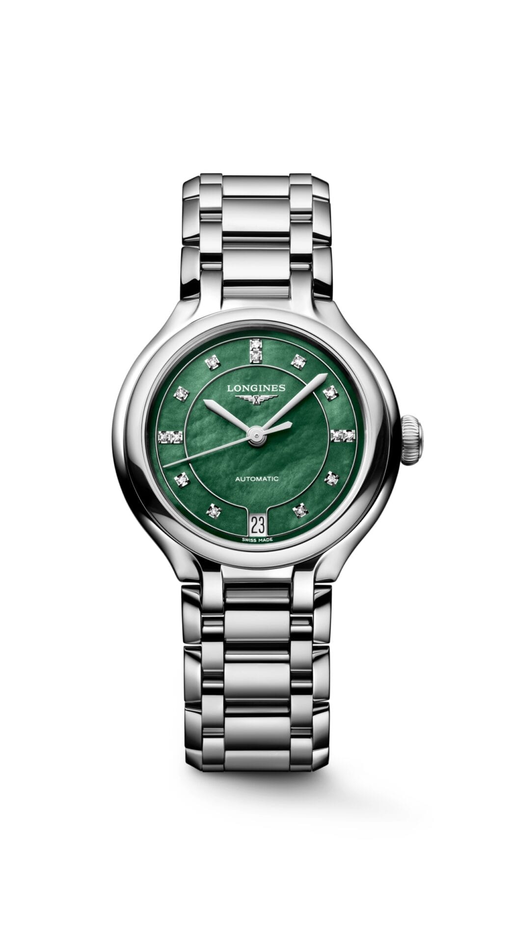 Model berwarna hijau dan biru mutiara seperti L8.126.4.07.6 dan L8.126.4.97.6 turut dihias dengan indeks berlian, menjadikannya seperti karya seni kecil yang bergerak di pergelangan tangan. Ditambah pula dengan komplikasi moonphase dan kaliber automatik eksklusif L899.5, jam ini memadukan keindahan visual dengan kecanggihan mekanikal.